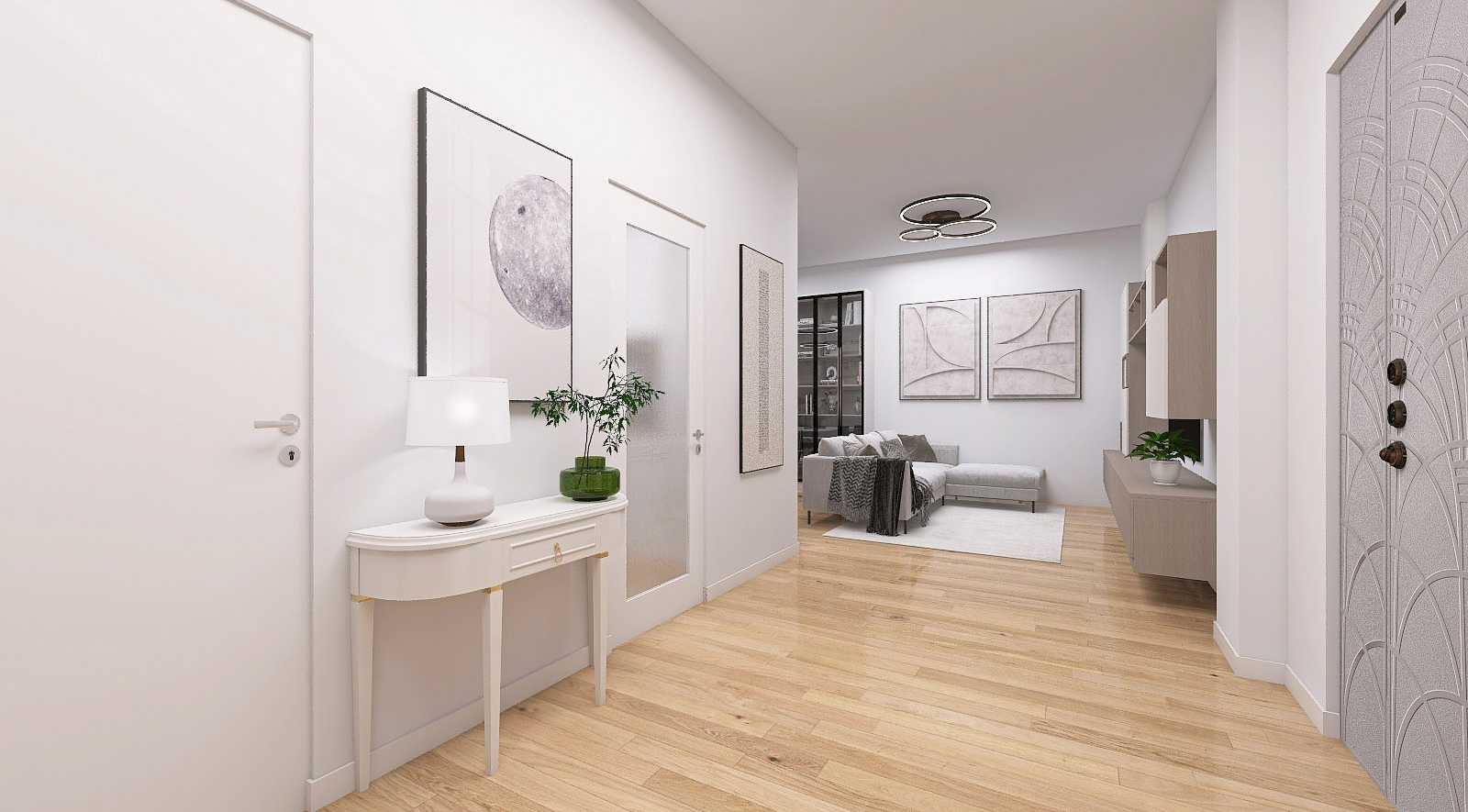 La luce naturale diventa protagonista, esaltando tonalità neutre e finiture materiche che donano armonia e comfort visivo. Ogni dettaglio è studiato per offrire funzionalità, ma anche bellezza: perché una casa deve essere pratica, ma soprattutto piacevole da vivere.